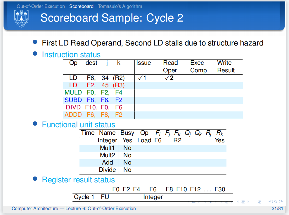 上图的结构和Scoreboard里的Function Unit Status表格很像,但是还是有许多不同的: