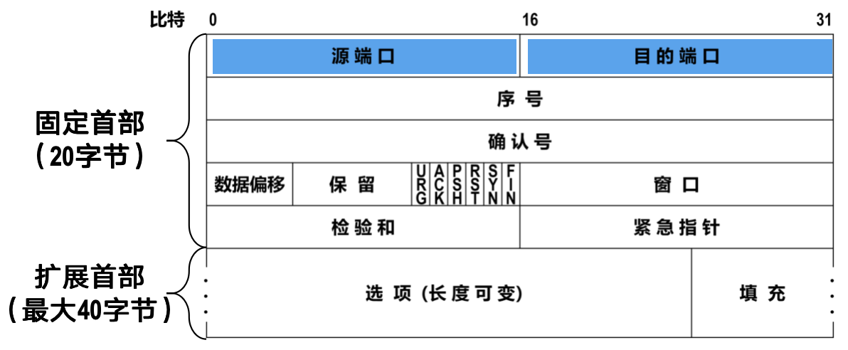 填充 (Padding): 长度可变。用于确保TCP首部长度是4字节的整数倍。