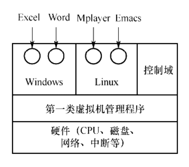 第一类虚拟机管理系统(Type 1 Hypervisor)直接运行在物理硬件上,可以说就是一个操作系统,它向上提供了若干虚拟机,向下则直接管理硬件资源.第一类虚拟机管理系统通常用于服务器环境,如VMware ESXi、Microsoft Hyper-V等.