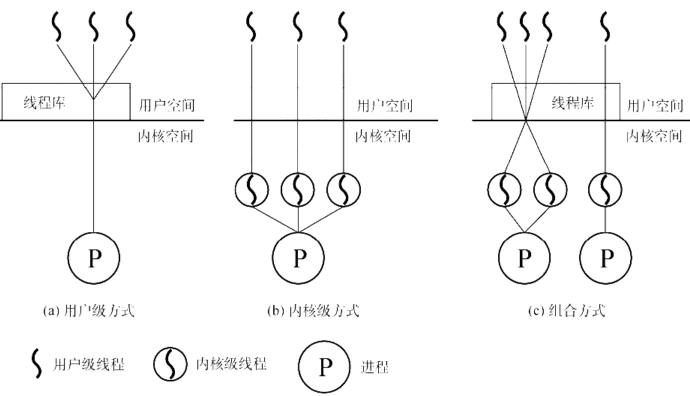 混合多线程(Hybrid multithreading):结合了用户级多线程和内核级多线程的优点.多个用户级线程映射到多个内核级线程上,内核负责调度内核级线程,而用户级线程库负责调度用户级线程.