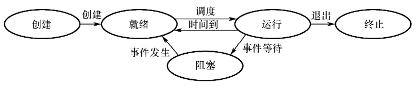 需要注意的是,一个进程从运行态变成阻塞态,是因为它主动请求某项资源,而不是因为操作系统强制它放弃CPU.如果操作系统强制一个运行态进程放弃CPU,那么这个进程会变成就绪态,而不是阻塞态.