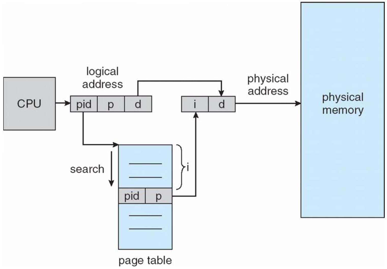 (pid, p, d)。 - 系统在反向页表中搜索,寻找匹配