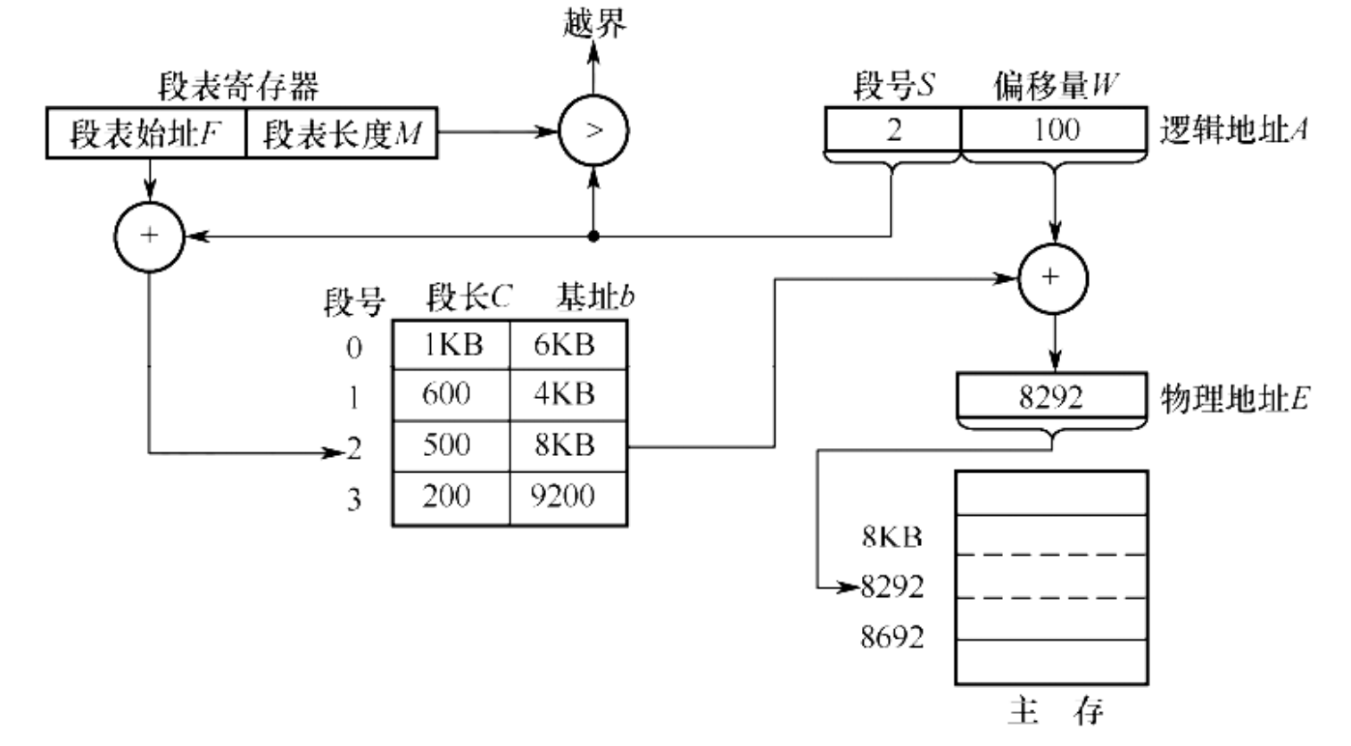 s,如果s < STLR,则该段号是合法的;否则产生越界中断。