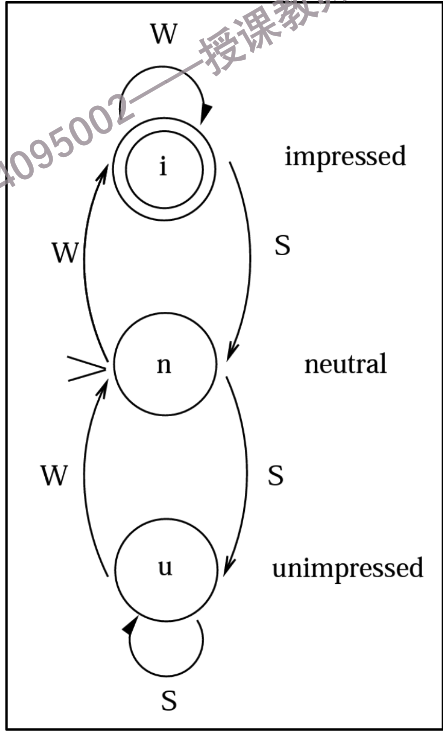 在决定有限自动机的图中,不同的状态有不同的符号: