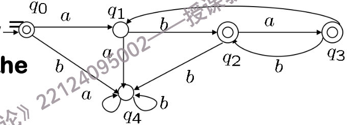因此,我们现在可以定义一个字符串被自动机接受的条件: