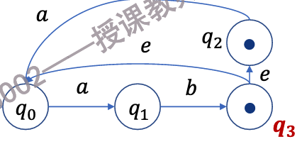 我们可以认为,\(q_1\)在输入\(b\)后,可以变为\(E(q_3)\),即\(\{q_0, q_2, q_3\}\)